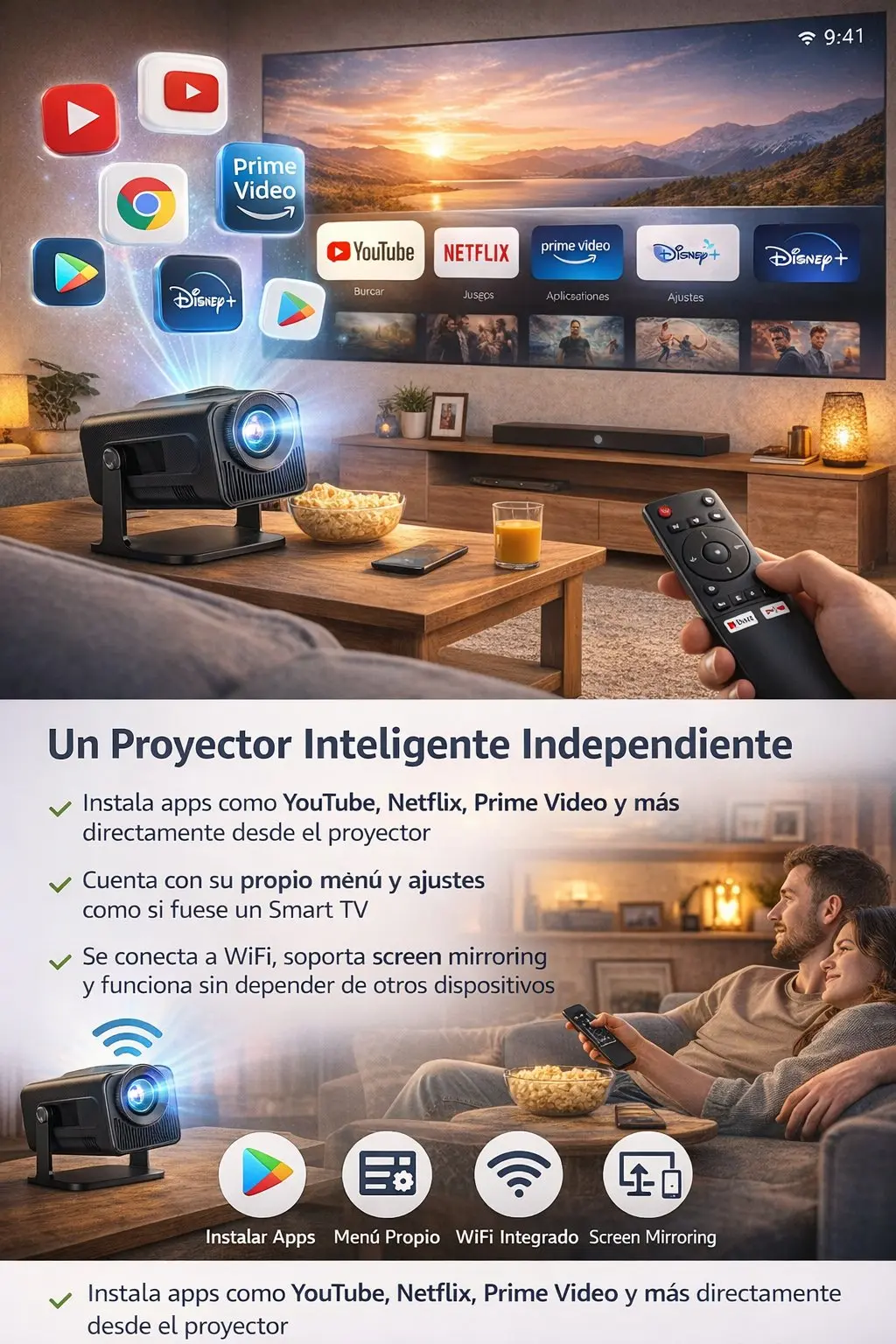📌 Ventajas frente a un proyector sin Android